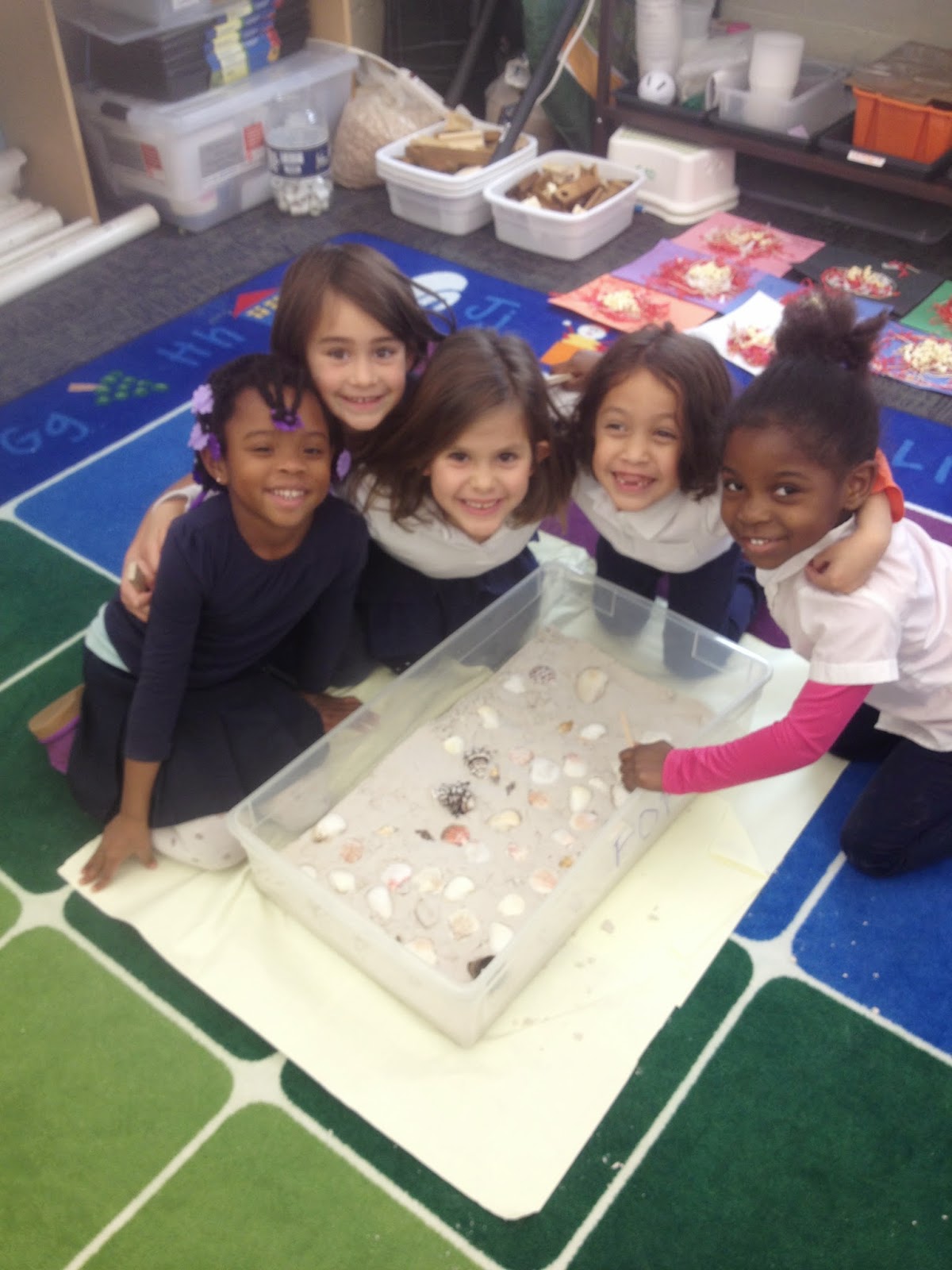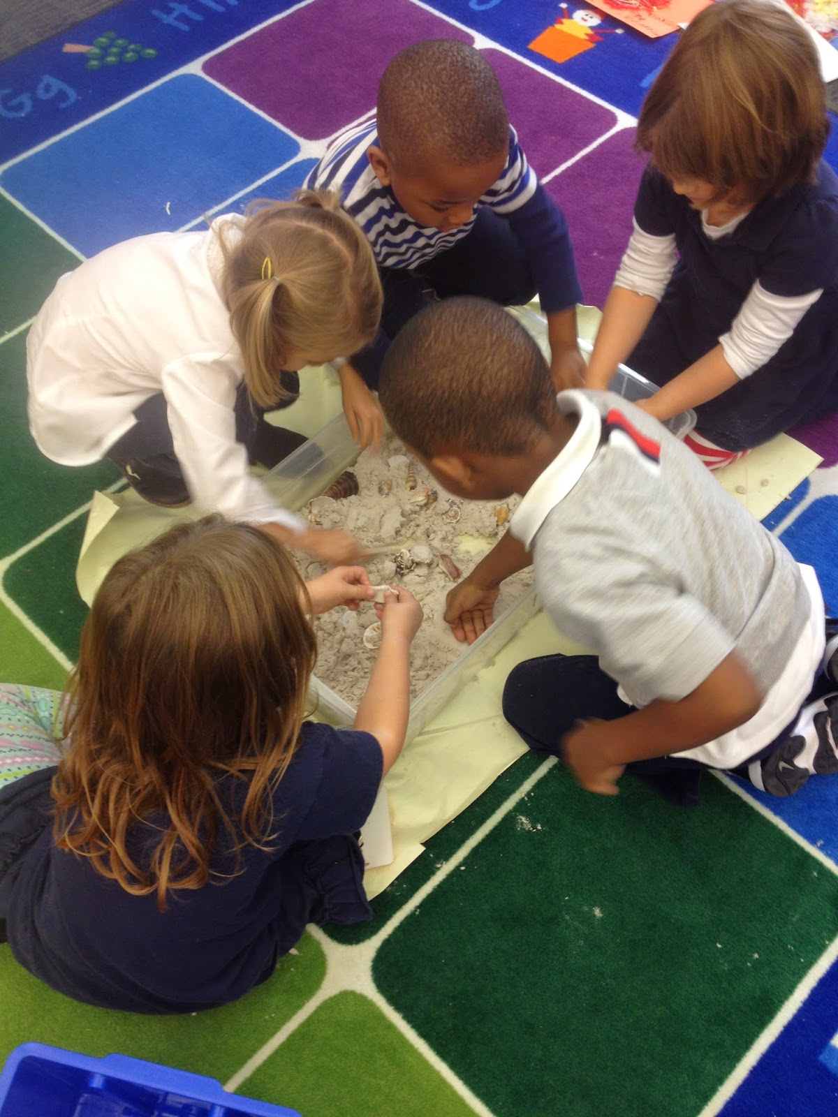 Even if students are in a center where movement is not explicitly explore (say making patterns in sand with shells) they can then explain the shape of the paths the shells made–zig-zag, curved etc.