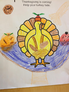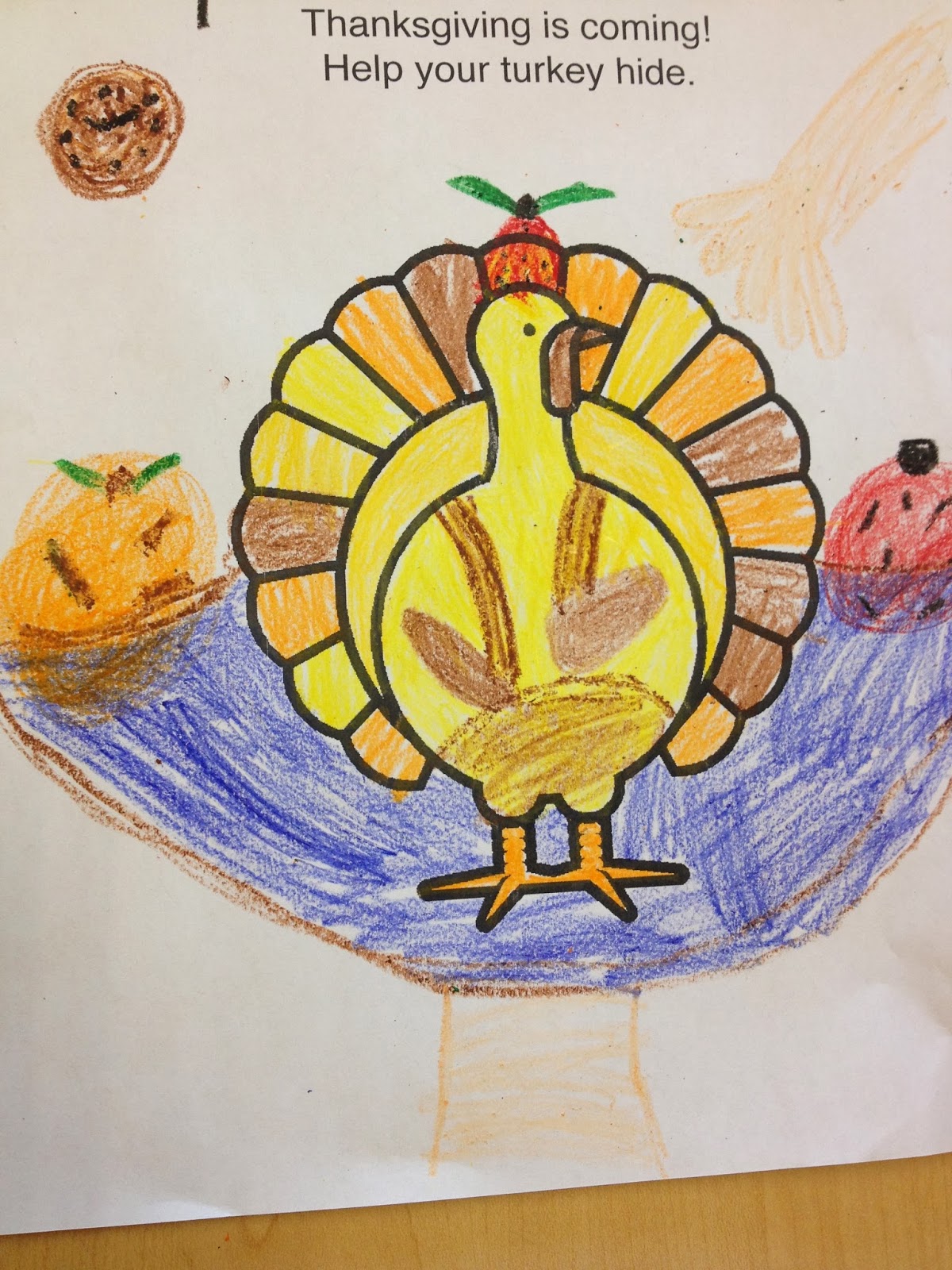Happy Turkey Day, everyone! I just wanted to share some really awesome artwork the first graders came up with after our Thanksgiving lesson this week. We read ‘Twas the Night Before Thanksgiving by Dav Pilkey. If you know the story, you know that at the end, the kids sneak the turkeys out of the farm under their shirts. That prompted a discussion–how do you disguise a turkey? Luckily our creative first graders had a lot of ideas. Check some of them out below.