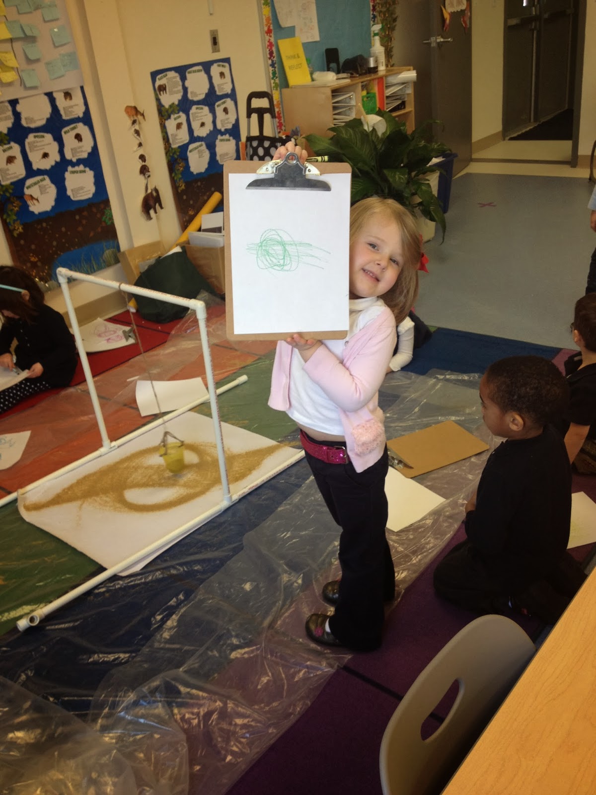Once the amazing pendulum was created, I made it a center choice for our youngest students. They picked crayons and drew what they saw. They were mesermized…. and so was I!