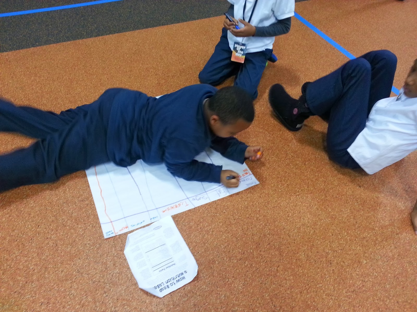 Here you see the students playing a game which asks them to make an educated guess on whether their food has more grams of carbohydrates, proteins, or fats. A fun way to practice this at home is to pull some cans and boxes out of the pantry and see if you can categorize together. You might be surprised at what you find!