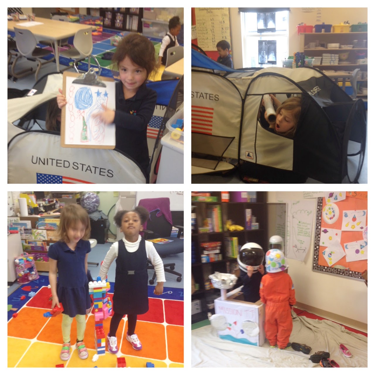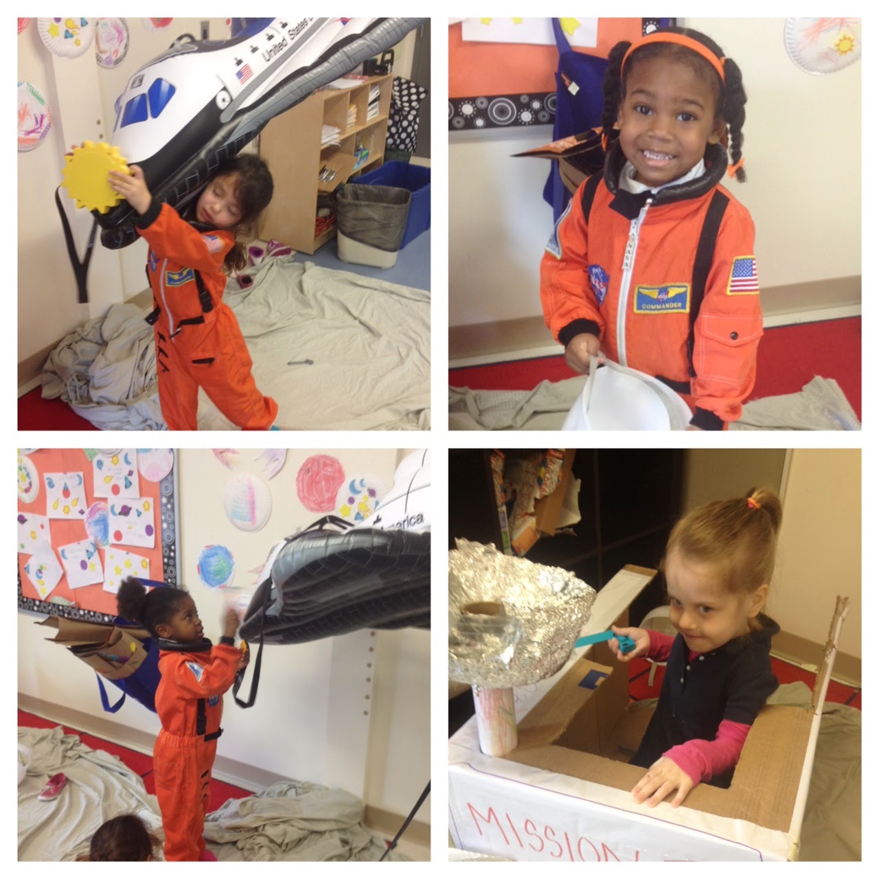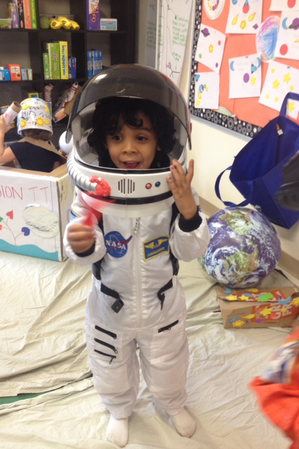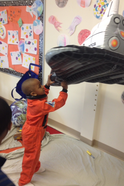 After all 5 classes voted, “SPACE “won” with plants a close second. ( Phew! That is how I needed things to go given our long winter!) From there, I wanted to ensure that students could experience, explore and be inspired by this abstract concept of “space” as much as possible and through dramatic play. Thus began the task of turning my classroom into “space”.