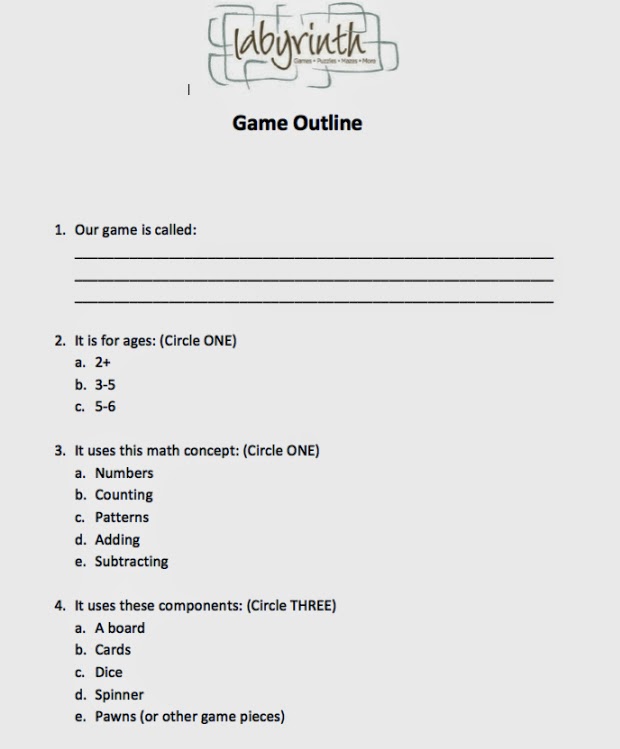 Then, after learning about theme vs. abstract games and game mechanics, students had to create a very rough outline for their design: