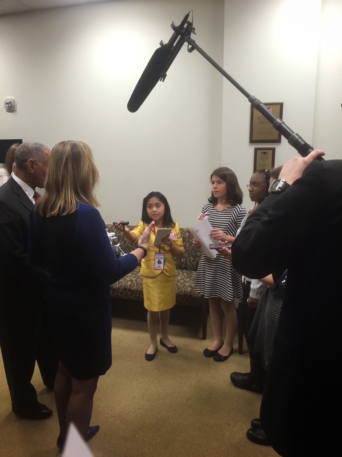 Given that this event included NASA leaders such as former astronaut and leader of NASA Administrator Charles F. Bolden, as well as Chief Scientist of NASA Ellen Stofan, the #SoSTEM organizers graciously invited our entire class! Moreover, they provided two students with press passes, allowing them to interview Administrator Bolden, Dr. Stofan and Chief US Technology Officer Megan Smith prior to the event’s official start. They interviewed the speakers with the student reporters from National Geographic for Kids and Time for Kids!