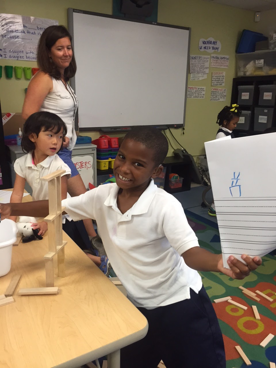 Rosie Revere Engineer has helped us kick off our year as ENGINEERS! ( Ms. Metzer, the para-professional in Ms. Wolfe’s K-1 split was a real engineer before a career change too!) In this great children’s book, Rosie learns to see failure as an important part of the engineer design process. Rosie kept an engineer journal made of “engineer paper” ( aka graph paper on the top, lines on the bottom) so the students have received their first “Engineer Journals” too!