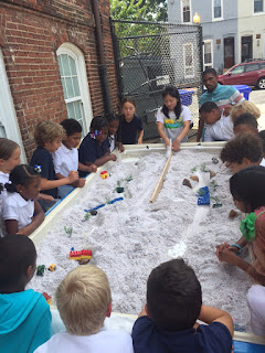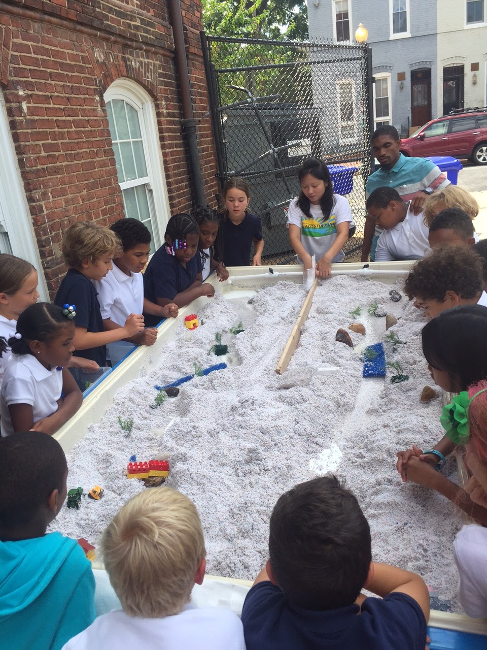 How does water, wind and ice shape the land? This is the question that has launched our first quarter Earth Science study. We kicked it off by inviting the DC Department of Energy and Environment to bring their stream table. Students are asked to plan river that slows the water and protects homes floods and landslides.