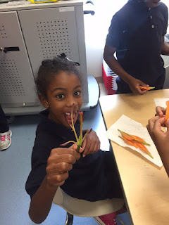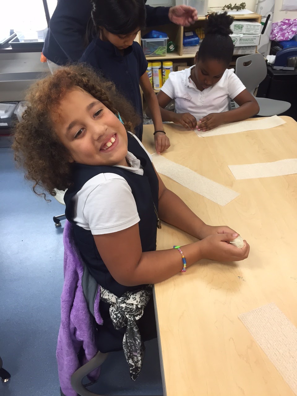 After learning about why the bees make certain things we love (honey) and use ( beeswax), students tasted raw pollen and made their own beeswax candles.